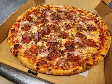Pepperoni, Ham, Green Peppers, Sausage, Onions & Mozzarella.