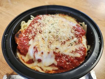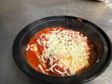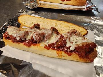 Meatballs topped with our homemade sauce and cheese and baked golden brown.