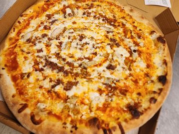 Pepperoni, Ham, Green Peppers, Sausage, Onions, Mozzarella & Ricotta.