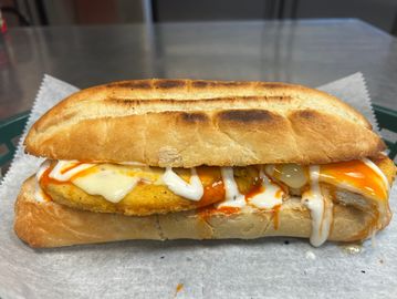 Crispy Chicken with Ranchero sauce, lettuce, tomato, onion, banana pepper & cheese.